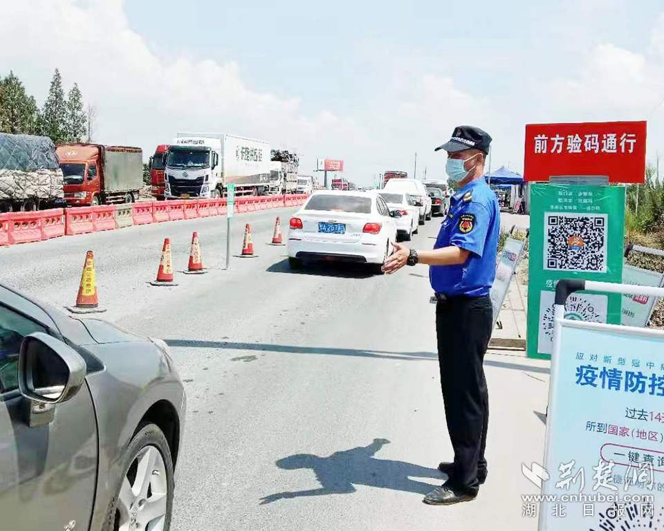 查验来孝车辆及司乘人员行程码。通讯员供图