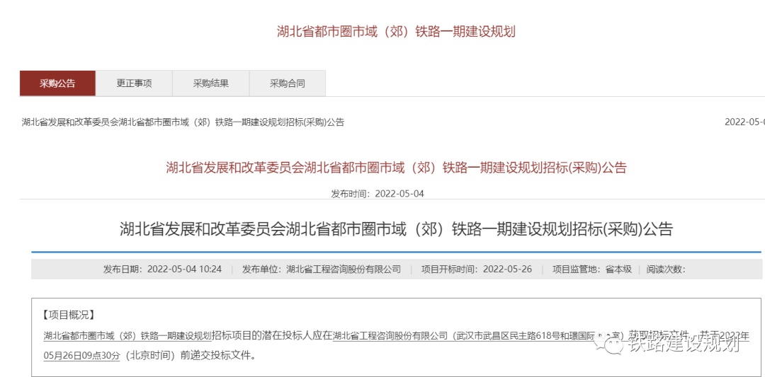 3、项目名称:湖北省都市圈市域(郊)铁路一期建设规划