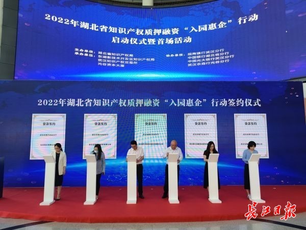 长江日报大武汉客户端5月7日讯(记者唐煜 通讯员林周)5月7日,2022年湖北省知识产权质押融资“入园惠企”行动启动,中国银行、招商银行、光大银行、武汉农商行等5家银行机构与8家武汉创新型企业签订知识产权质押贷款协议,签约金额达2.58亿元。