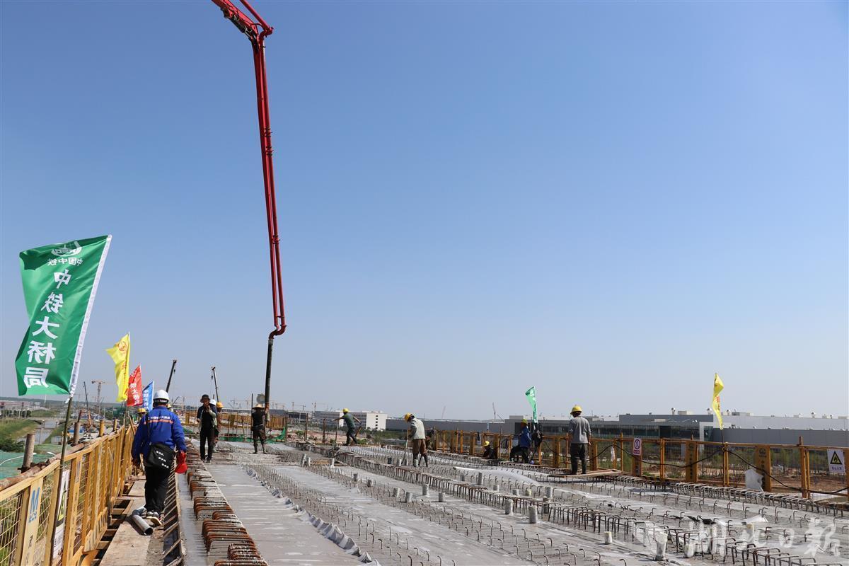 据施工方中铁大桥局项目部负责人介绍,浇筑的首联连续梁是项目通江二路节点桥。为确保工程进度和质量安全,“五一”假期,项目施工管理团队坚持大干不打烊,开展多次专项安全与技术培训,从工序衔接、物资供应、设备配置、过程管控、后勤保障等方面入手,精心编制施工及安全专项方案,细化交底内容,加强现场技术指导,确保各工序紧密衔接、有序推进,浇筑过程安全可控。