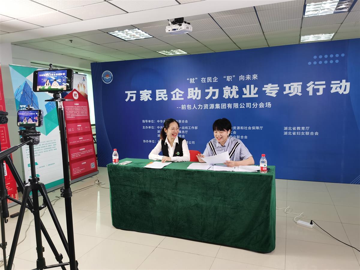 签约台的另一边,“‘就’在民企,‘职’向未来”直播带岗正在线上直播中。