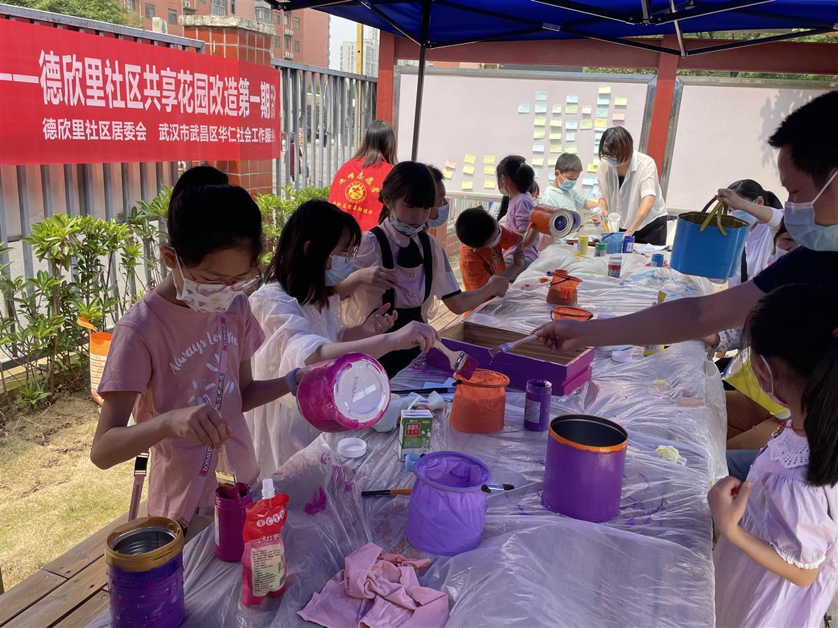 湖北日报讯(记者胡雯洁、通讯员陈喜枝、于璐)社区共享花园是城市社区绿地的组成部分,也是城市社区绿色空间的一种形式。5月8日,武汉市新技术开发区九峰街道德欣里社区携手武昌区华仁社工开展了以“艺”起来行动,共创“欣”花园为主题的花园改造活动,通过共商花园创意、旧物创意改造、绿植种植体验等形式,让社区居民“参与式”体验花园改造的过程,培养社区居民的自治意识。
