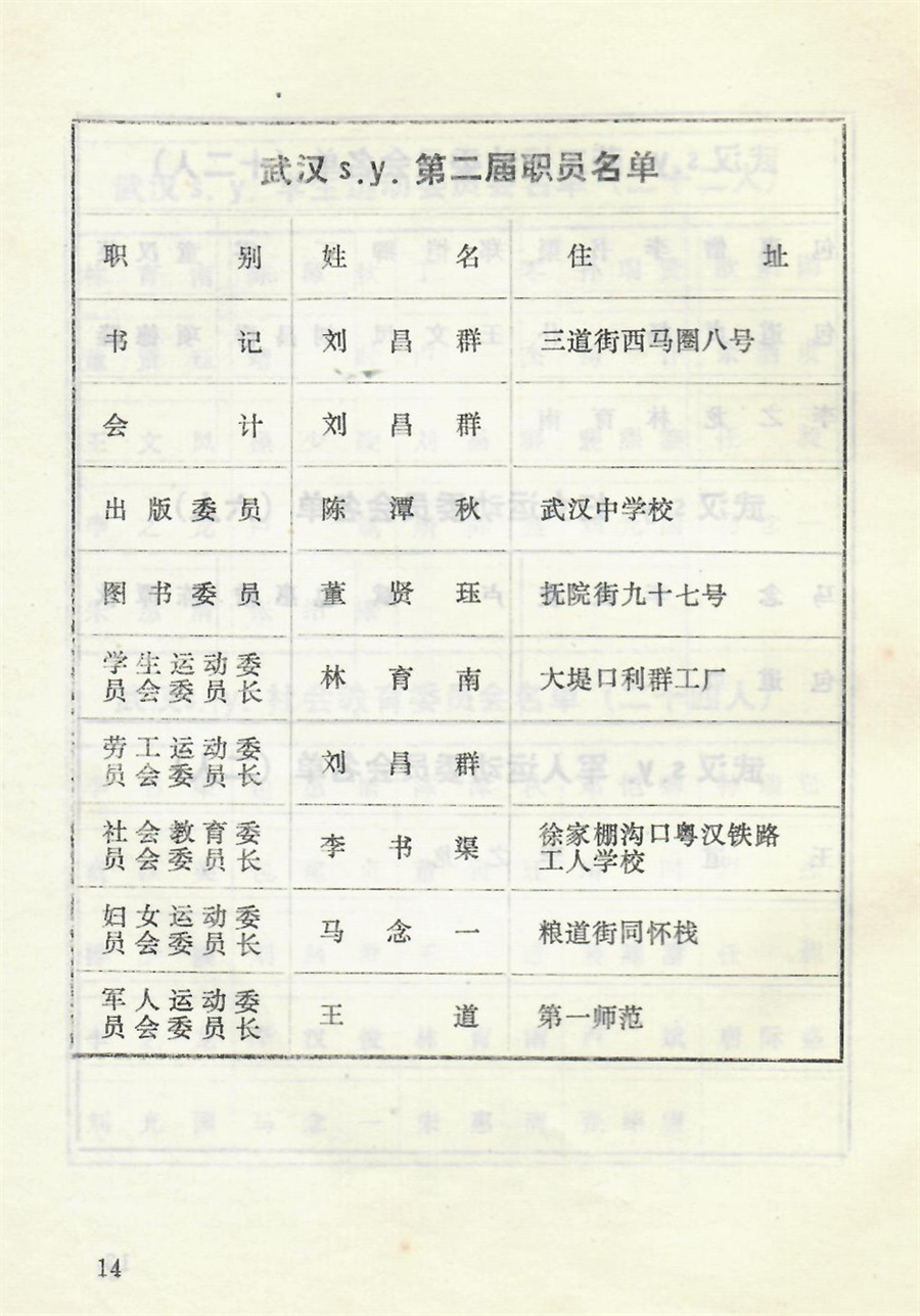 武汉S.Y.(社会主义青年团)第二届职员名单