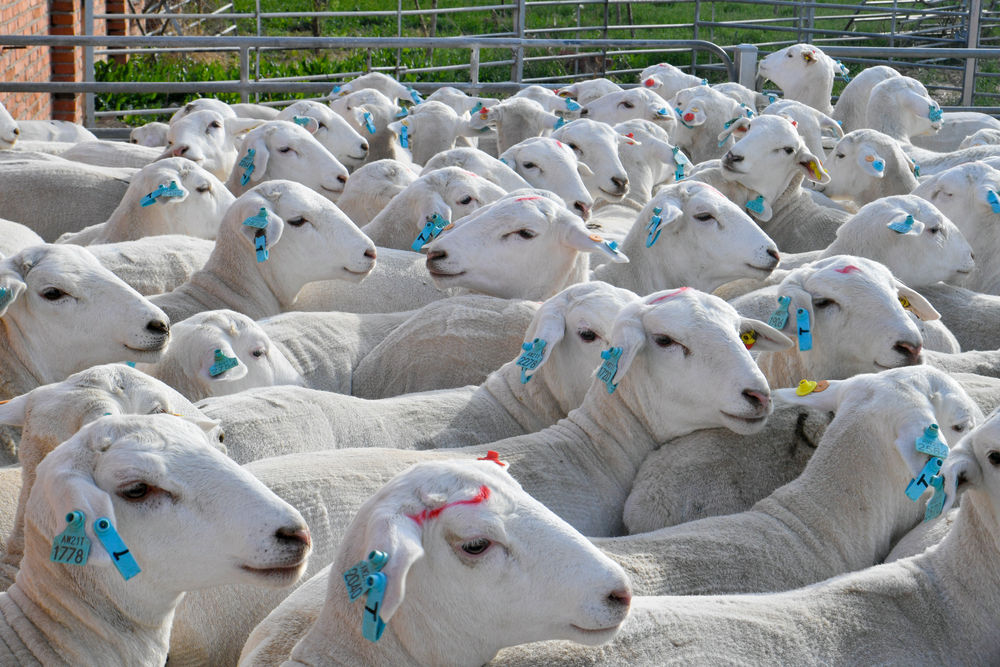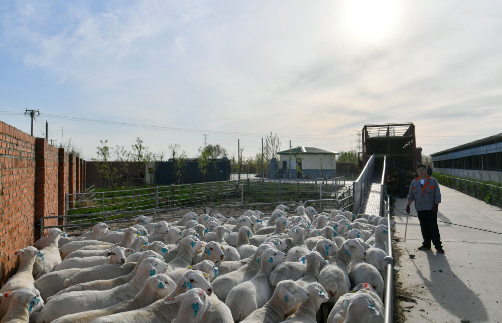 在天津奥群牧业有限公司核心育种场,一批种羊等待进行装车(4月16日摄)。新华社记者孙凡越摄