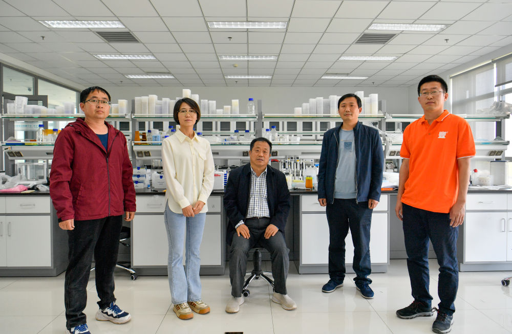 这是在天津市农业科学院拍摄的花椰菜育种团队部分成员,从左至右分别为:牛国保、张小丽、孙德岭、江汉民、单晓政(4月19日摄)。新华社记者孙凡越摄