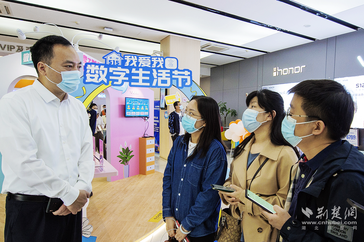 中国电信湖北公司数字生活运营中心总经理刘杰向记者介绍数字生活节内容。通讯员 供图