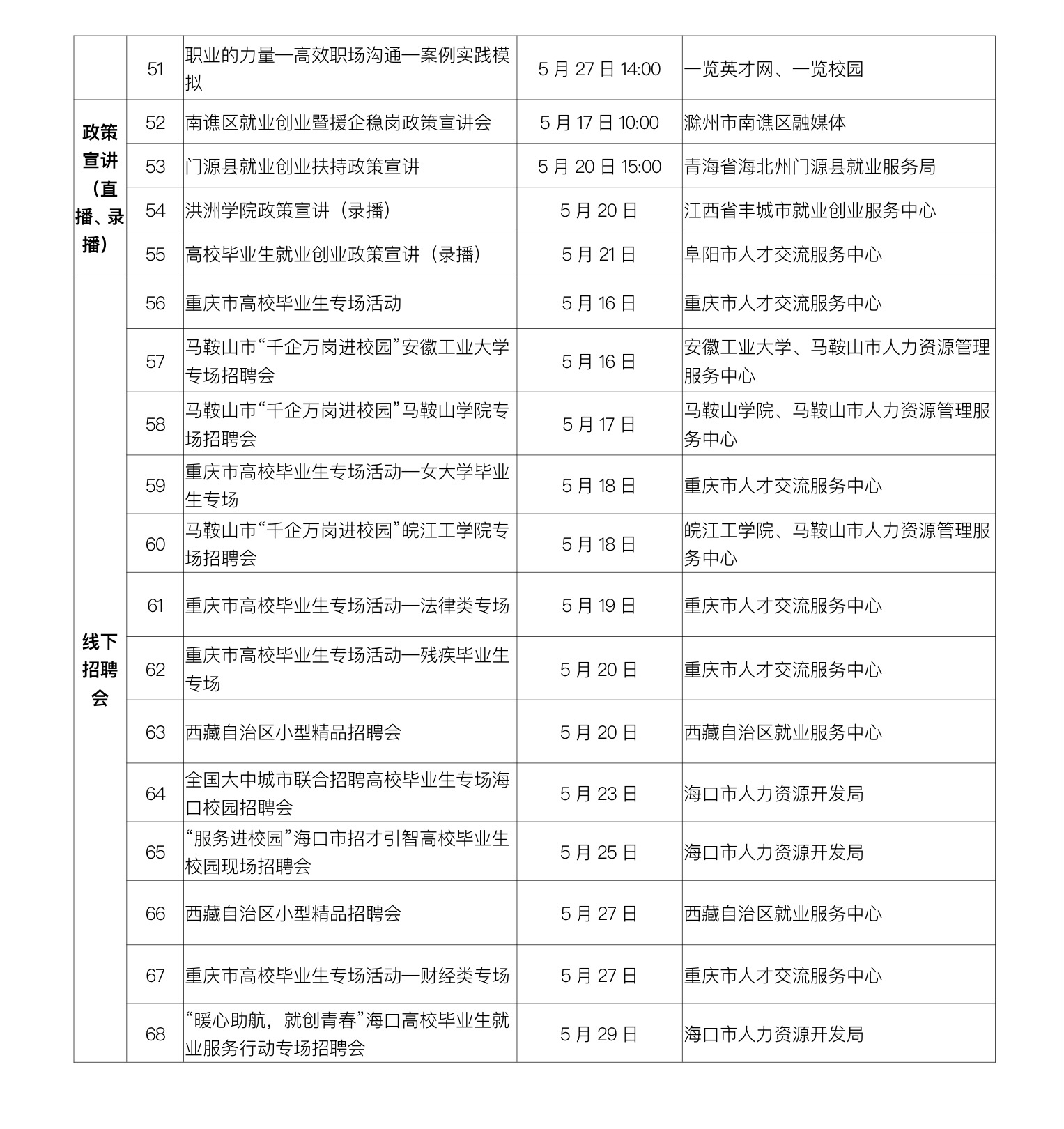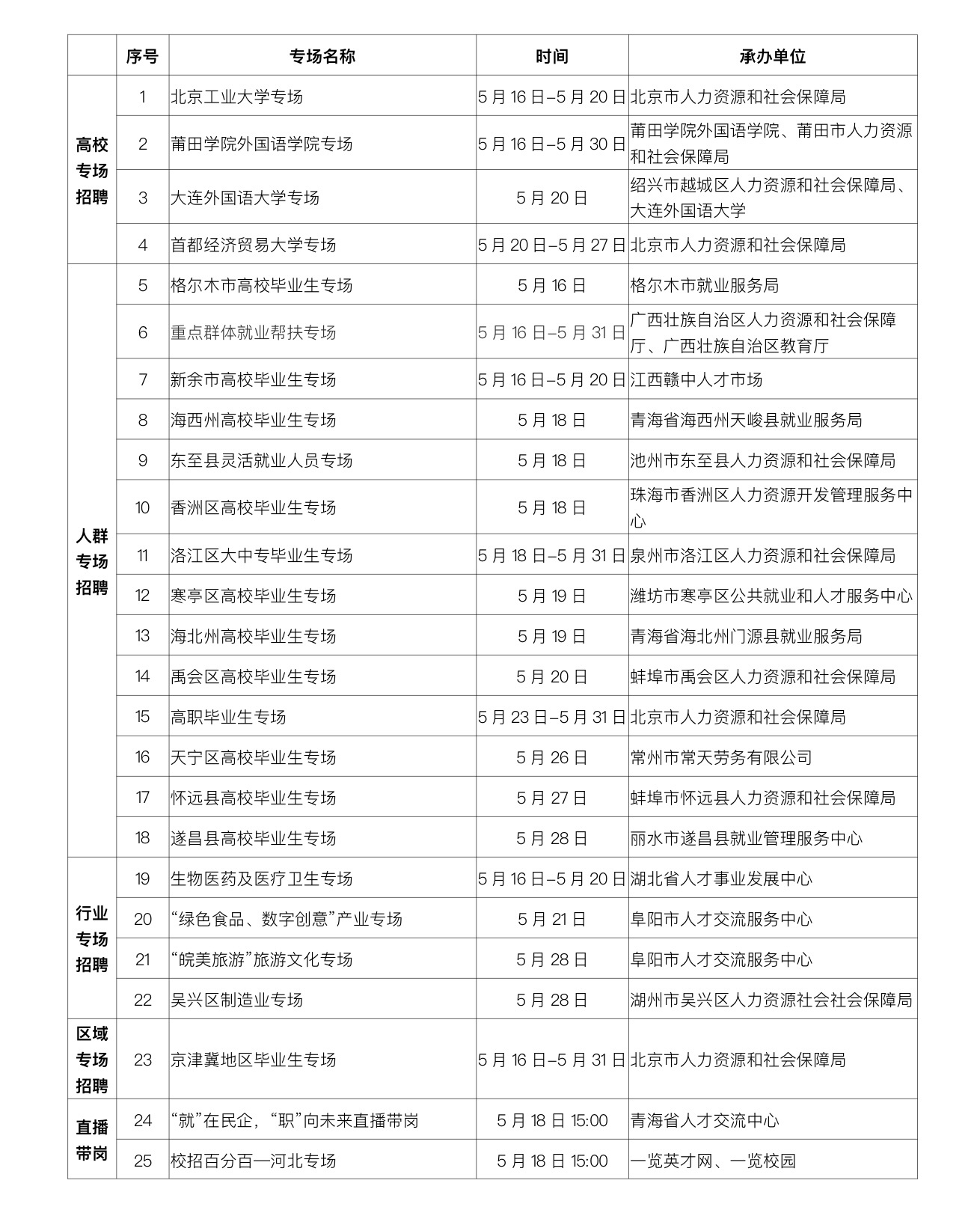 高校毕业生和用人单位可通过中国国家人才网大中城市联合招聘活动主会场页面(http://dzcs.newjobs.com.cn/),或在微信小程序中搜索“全国高校毕业生精准招聘”平台查询相关信息并参与各类专场服务活动。