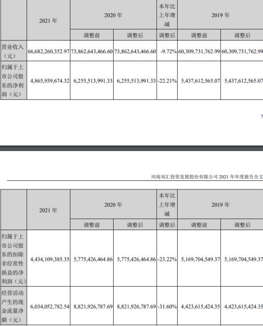 报告显示,公司2021年营业收入实现666.82亿元,同比减少9.72%,归属于上市公司股东的净利润48.66亿元,同比减少22.21%,归属于上市公司股东的扣除非经常性损益的净利润44.34亿元,同比减少23.22%,经营活动产生的现金流量净额60.34亿元,同比减少31.60%。