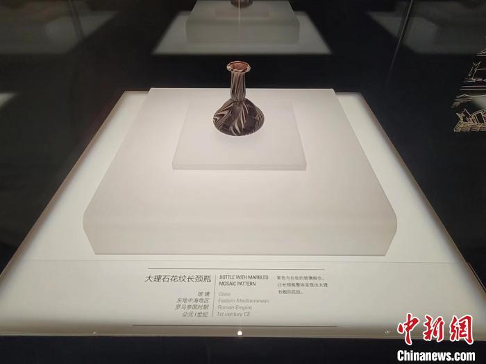 图为展出的大理石花纹长颈瓶。 阿琳娜 摄
