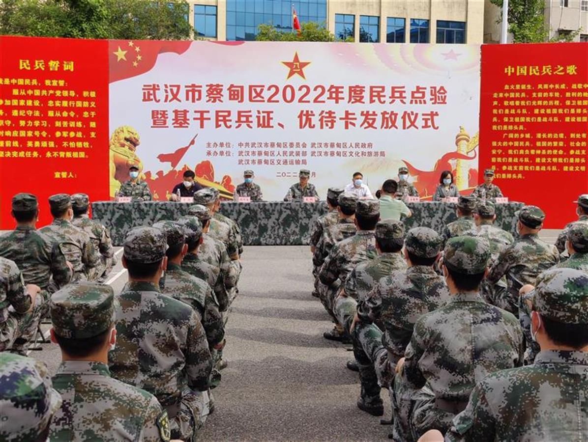 据悉,这是武汉市发放的首批民兵优待卡,共计1000余张。凭借优待卡,蔡甸区域内各级编组的基干民兵可在辖区内享受旅游免门票和公共出行免费等优待政策。