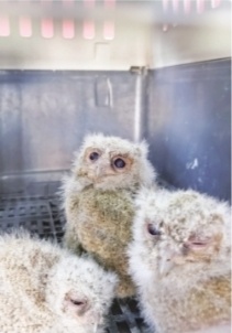 被救的三只领角鸮雏鸟。