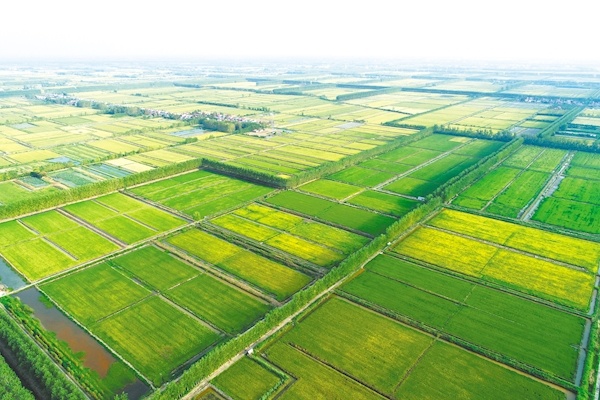 “田成方、林成网、渠相连、路相通”,5月9日,行走在湖北省运粮湖农场,一排排中山杉葱茏挺拔,围绕一块块农田构成纵横交错的林网,水乡田园美景映入眼帘。