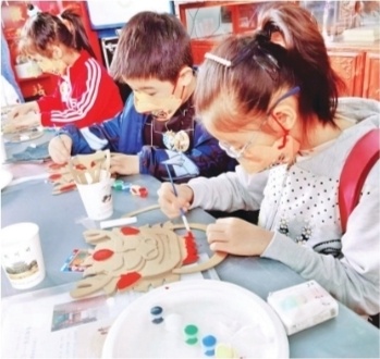 孩子们制作仿真铺首衔环。