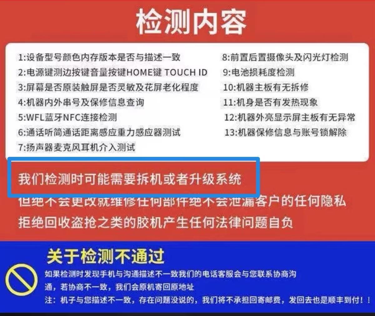 “客服之前并没有告诉我要拆机检验,如果说了,我肯定不会同意的。”小苏说,稍微懂点电子产品的人都知道,一台机器拆机过和未拆机过,二手回收价格会受到很大影响。
