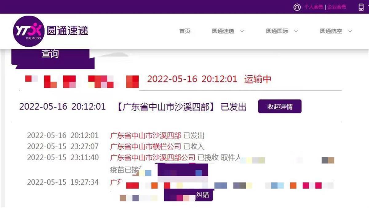 随后,他便下单了圆通快递,站点工作人员将这些食品放至铺好冰袋的泡沫箱内,打包好寄出。5月16日上午,唐先生查询物流信息发现,包裹不仅没有到,并且物流信息还停留在前一天晚上,被沙溪四部公司揽收后,又被横栏公司收入。直到16日晚上8点多,物流信息才再次更新,显示沙溪四部已发出,此后便再无物流信息更新。