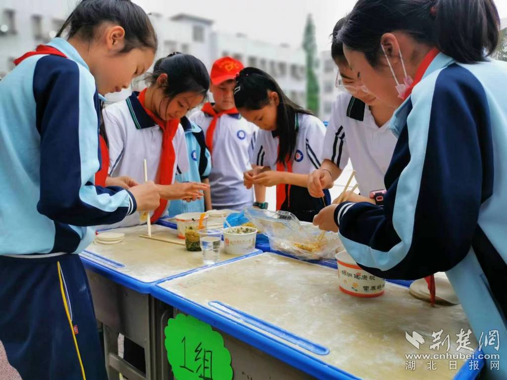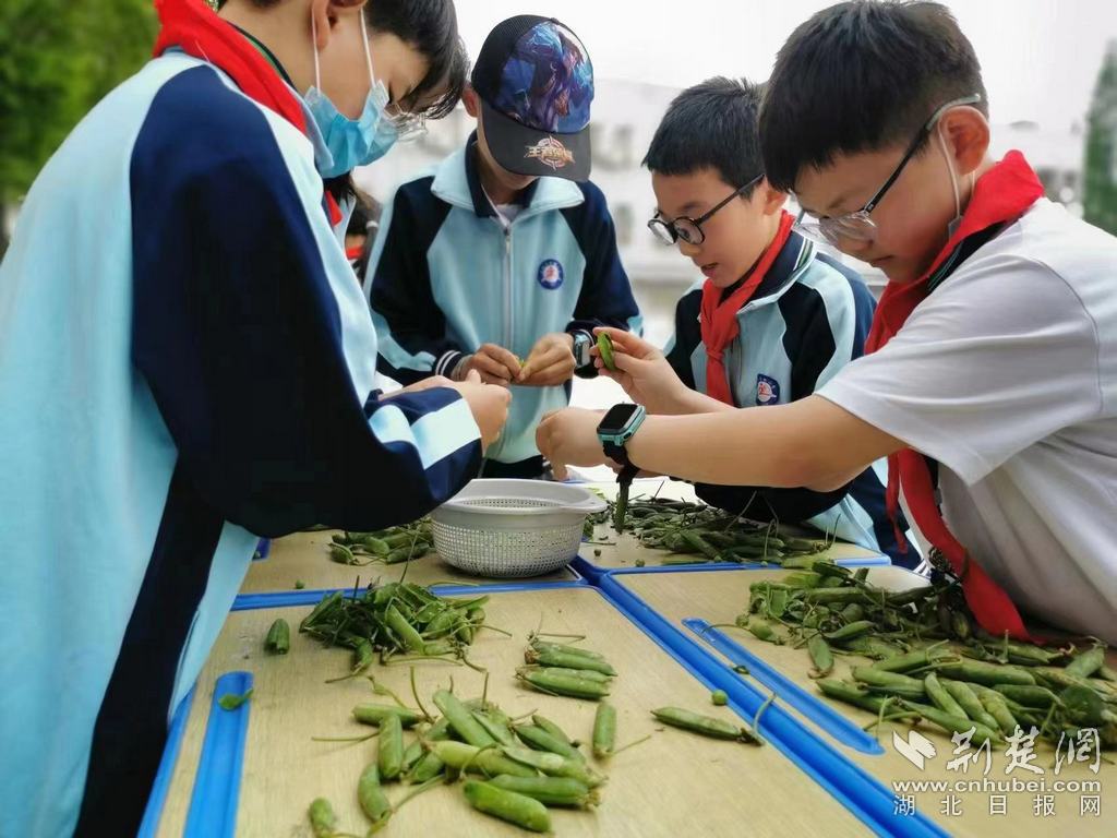 荆楚网(湖北日报网)讯(通讯员程国辉、彭晓峰)“左右穿花剥豆功”:比拼学生剥豆速度;