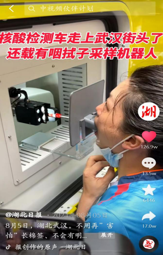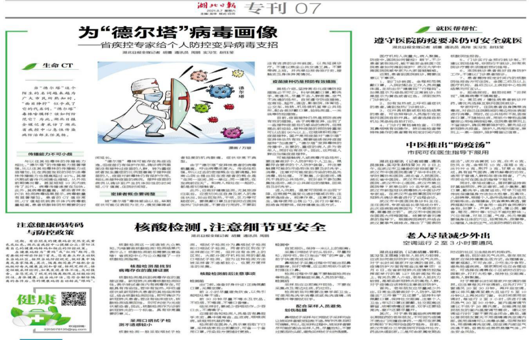 3.紧扣社会热点正确引导。针对2021年夏季“德尔塔”疫情,湖北日报每天以一版消息+要闻版链接形式报道,第一时间在“两微一端”推送发布权威疫情通报和信息。新媒体直播+抖音短视频《移动核酸检测车开到“家门口”,最先进的咽拭子采样机器人投入使用,最快45分钟出结果》全网观看量达1.7亿次。围绕“双减”政策落地,推出《“双减”来了》系列报道和相关调查性内参报道,缓解家长群体焦虑情绪,提出对策建议。楚天都市报·极目新闻快评《别过度解读商务部鼓励家庭储存的通知》,理性客观及时疏导网络情绪。