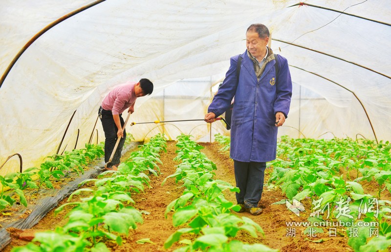 作为全县优秀基层党务工作者的宁自忠,始终坚持党建引领,采取“种植合作社+村集体经济+脱贫户”的经营模式,发展特色产业,助力乡村振兴。在本村五组进行土地集中流转改革试点,从村民手中流转土地110亩,建成规格统一,功能齐全,远程控制的钢架大棚40座。引导村民调优种植品种,种植迷你黄瓜、小香芹等附加值高的绿色蔬菜,提升种植效益。同时安装滴灌设备,灌区面积达300亩以上,建设机耕路2560米大棚,使蔬菜增产增量,方便村民采购运输。目前,全村种植户417户,蔬菜大棚1872个,每棚平均年纯利润9000多元,主要种植西红柿、辣椒、茄子、芹菜等品种,年产蔬菜6000余吨,年产值2000余万元,成为供应孝昌县城以及孝感、武汉等农贸市场的“菜篮子”。
