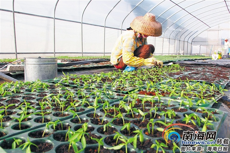 三亚市南繁科学技术研究院育苗基地的育苗棚内,工作人员正在移种辣椒苗。海南日报记者 武威 摄