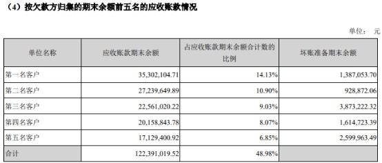 通润装备2018年年报披露的按欠款方归集的期末余额前五名的应收账款情况显示,截至2018年底,通润装备对第一名、第二名客户的应收账款余额分别为4092.64万元、1915.23万元,坏账准备分别为204.63万元、310.63万元。常润股份招股书披露的2018年对通润装备的应付账款在通润装备第一名、第二名应收账款之间。