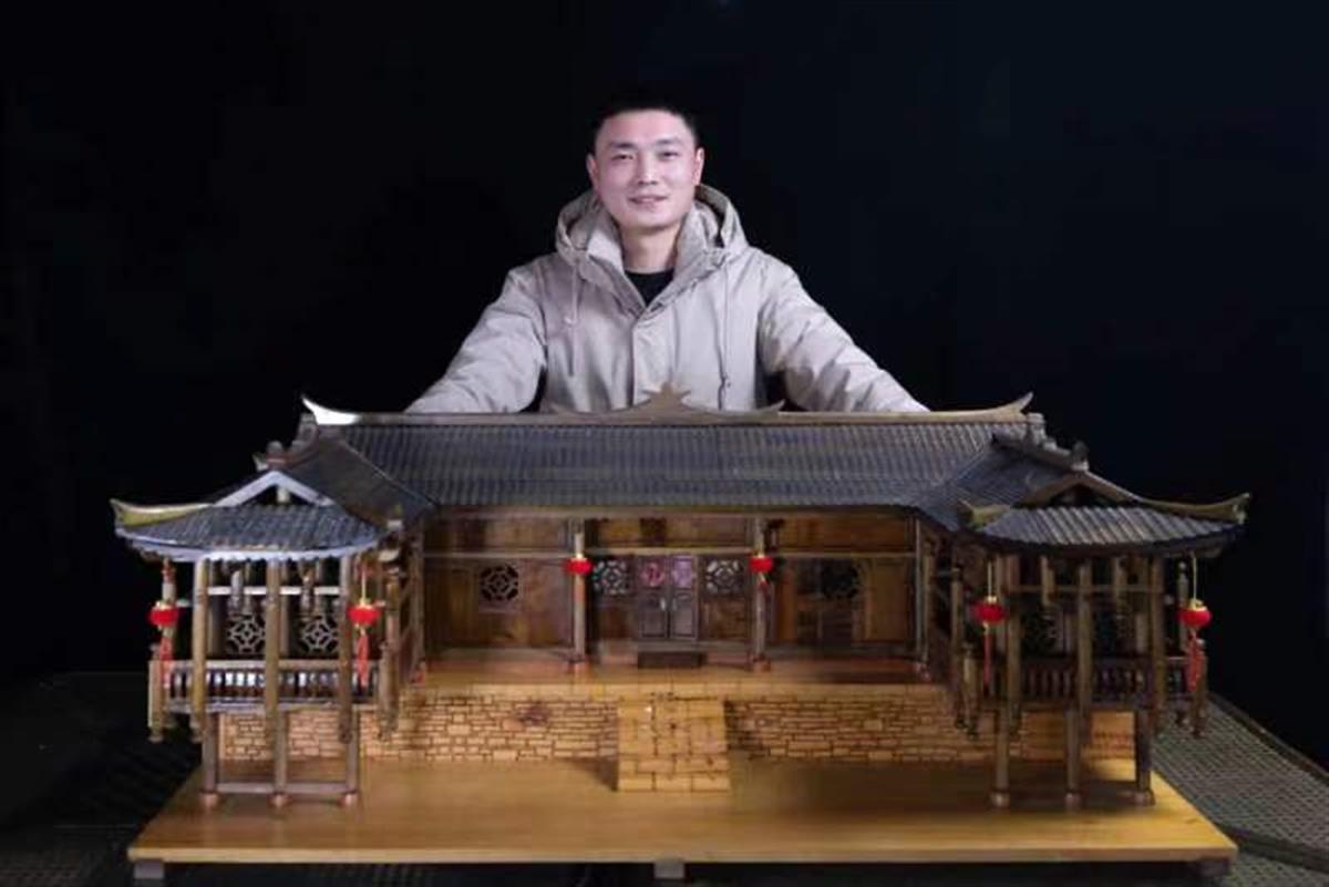 在恩施州宣恩县椒园镇,有一位80后土家族吊脚楼营造技艺县级非遗传承人,他叫黄俊。在第七届中俄线上“长江—伏尔加河”青年论坛、首届中国(武汉)文化旅游博览会上,他制作的吊脚楼微缩模型大放异彩。在湖北省“工友杯”首届“e有绝活”高技能人才技能大赛,黄俊也入围60名初评选手之列。