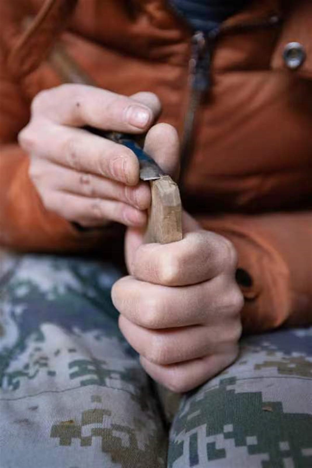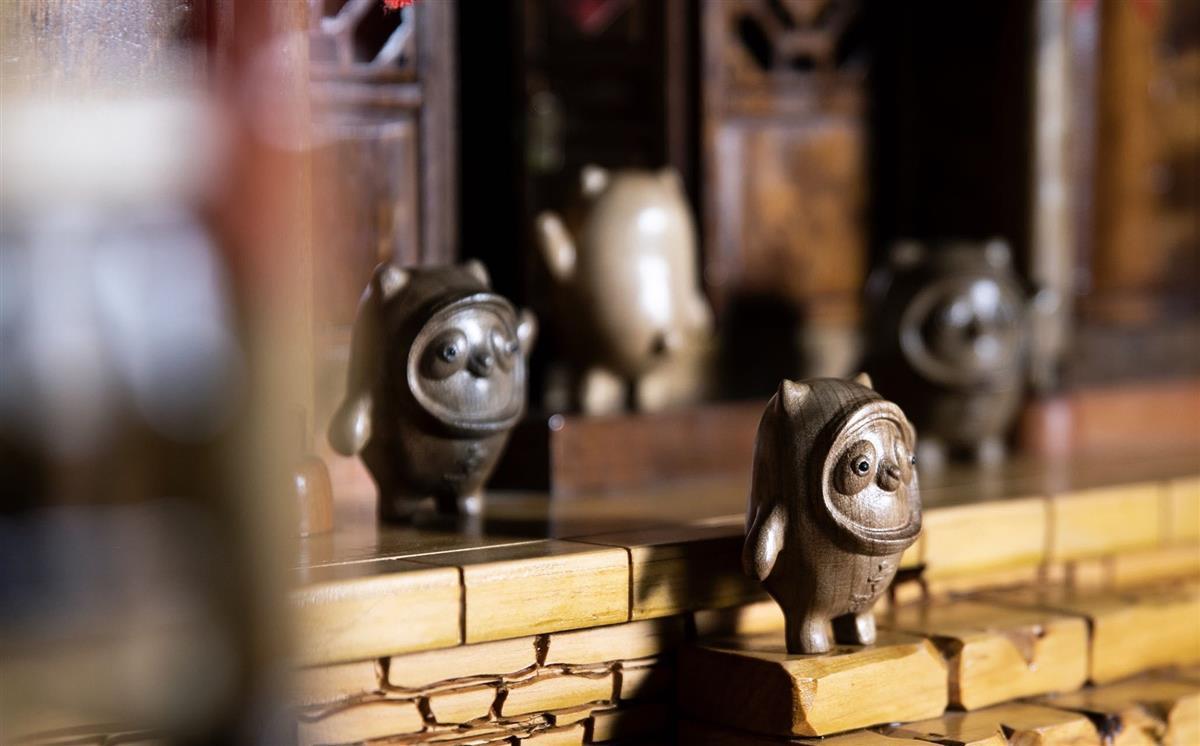 与木头结缘,这还源自黄俊的父亲。还在读小学时,黄俊就帮着父亲磨石头、打下手,泡在石雕、根雕堆里长大。曾经有一位韩国客商,不远千里赶到恩施大山,就是为了求得父亲制作的一套文房四件套。外表青灰、内含形似菊花的白色方解石晶体的石头,在父亲的手中变幻出青松、仙鹤、白菊的模样,时至今日,他仍记得对方小心翼翼手捧着砚台仔细观摩的样子,坚持要翻译一字不落转达他的赞美与感谢。