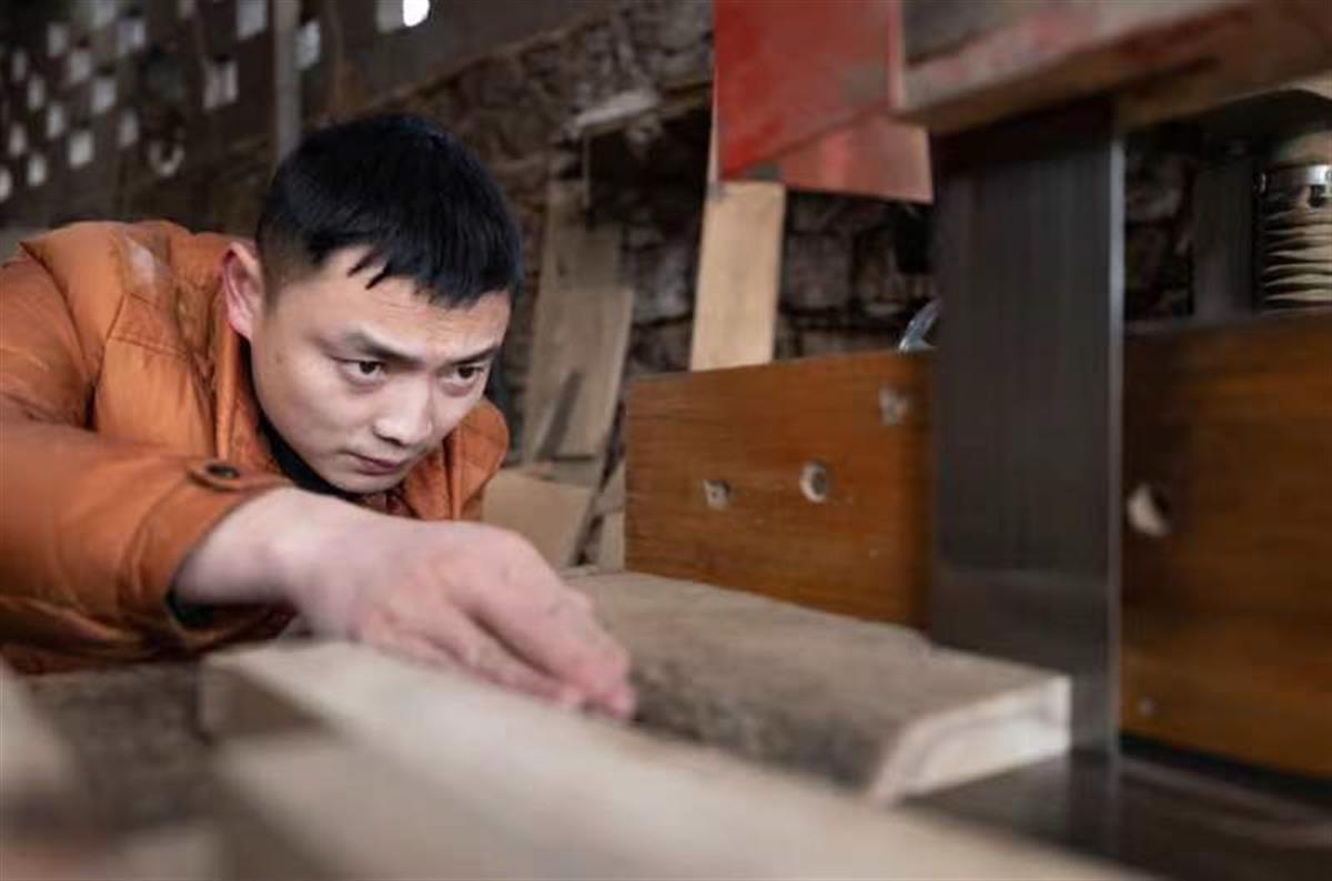 选料、切割、平刨、压刨、锯料、打孔……不大的工作间里,几台木工机轮番开动,木屑漫空飞舞。在黄俊娴熟地操作下,一块块、一条条模型构件陆续成型。