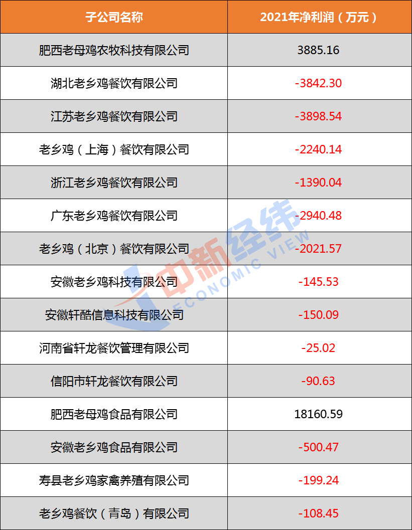 老乡鸡15家子公司13家亏损。数据来源:老乡鸡招股书