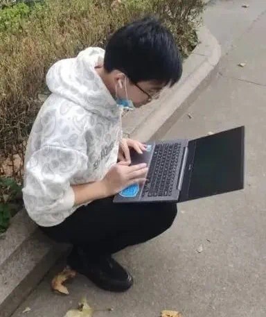科大讯飞智慧医疗事业部员工在路上接到客户要外呼的需求后,在路边登陆系统测试