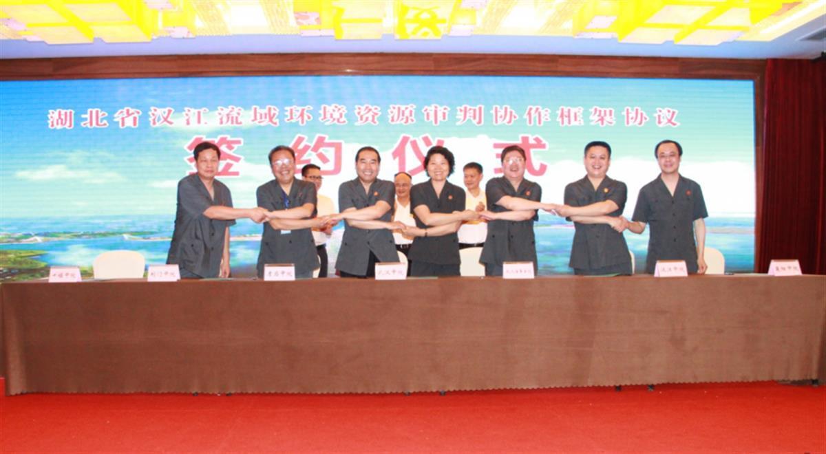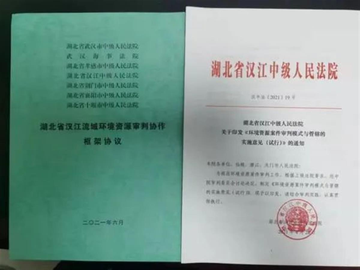 2021年6月,在省法院指导下,汉江中院与汉江沿线的六个中院签订了《湖北省汉江流域环境资源审判协作框架协议》,对保护汉江流域生态环境联动协调机制形成共识,以充分发挥审判职能,建立全方位、多层次的司法协作机制,用法治力量保护好汉江流域生态环境。协议规定,各协作单位要严厉打击破坏汉江流域生态环境的犯罪行为,依法审理涉汉江流域生态环境保护民事案件,监督支持行政机关依法履行环境资源监管职责;建立汉江流域环境公益诉讼审判工作联动机制,探索审理刑事、行政附带民事公益诉讼案件的审判模式。