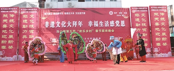 近年来,浩口镇积极推动非遗文化在传承中“活起来”,每年组织非遗传承人以及民间文化活动骨干艺人开展各类传统节俗节庆非遗展示展演活动。截至目前,连续举办4届潜江民歌传承保护展演、5届非遗文化拜大年春晚、2届“传统体育健康行”太极拳推广暨传统武术展演活动。每年开展舞龙舞狮展演、“非遗传承人闹元宵”等活动,惠及群众10万余人次。