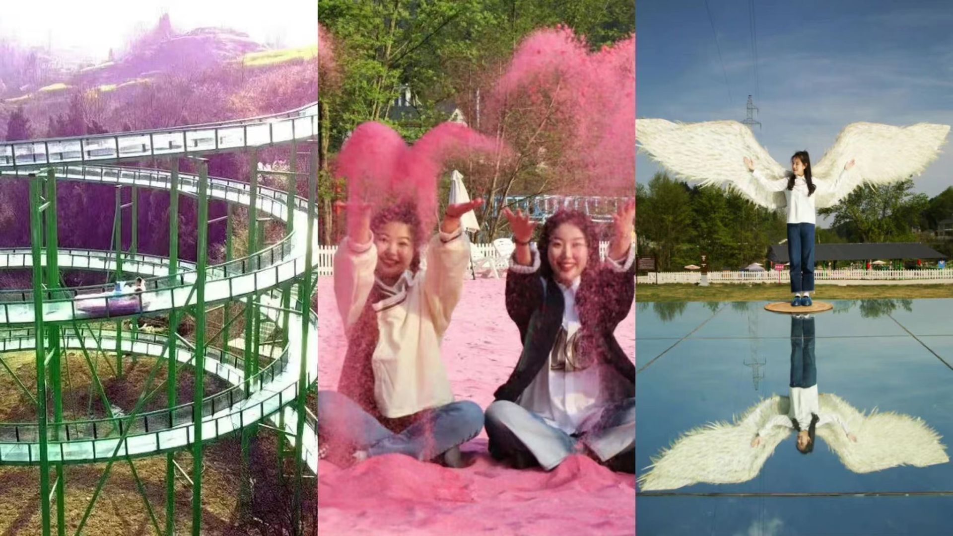 原本只有一段晃晃桥,晃的人多了,拍的人多了,晃成了抖音上“网红桥”。土地坡村索性将游玩地升级为乡村游景区,心语岛·梦幻秘境游乐园应运而生。景区配备粉丝沙滩、天空之镜、玻璃水滑道等多项娱乐体验项目,还配套建有乡村集市,带动周边农家乐,有效实现农旅融合,促进群众增收致富。