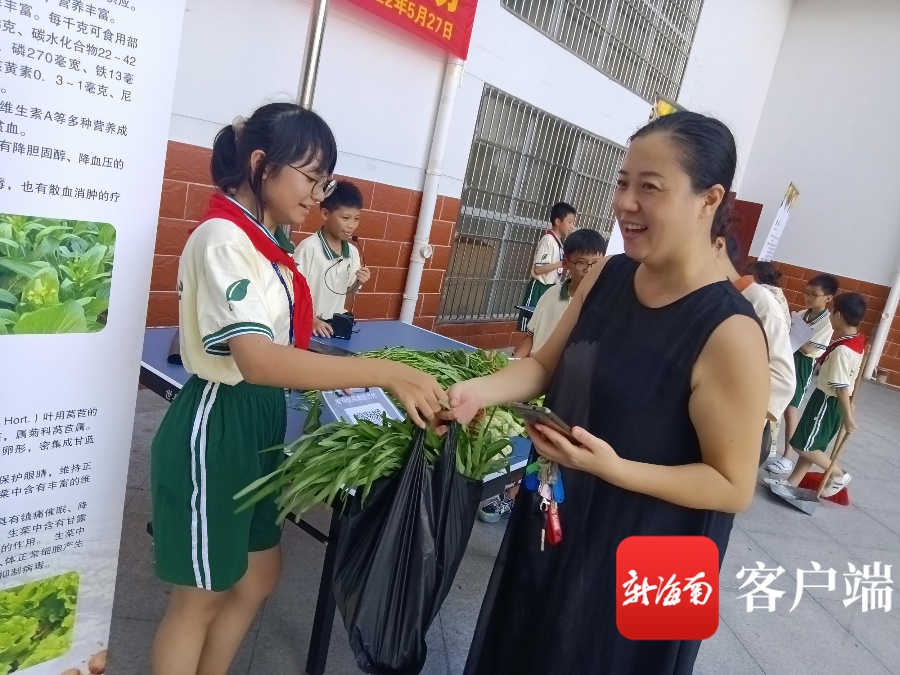 5月28日,学校还专门组织了一场“蔬满校园 悦享成长”主题义卖活动,活动地点就设在教学楼一楼门前的空地,家长志愿者们纷纷抢购蔬菜,对学校开展的绿色教育、劳动教育和实践活动很是满意,“让孩子在劳动中获得知识,体验了劳动带来的喜悦,非常好!”