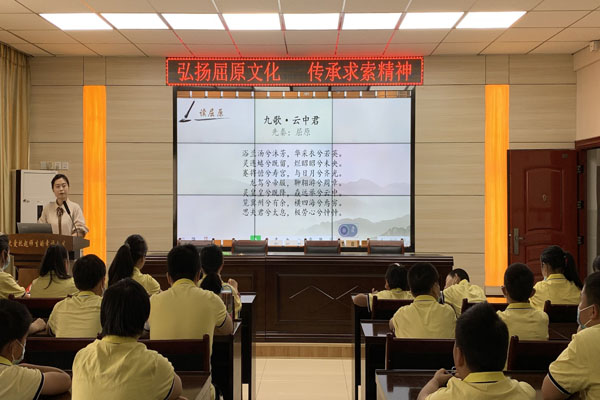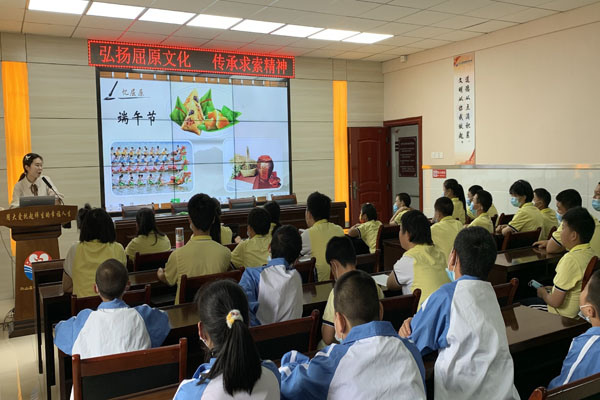 5月29日,一场“诵读屈原经典 传承屈原文化”主题教育活动在兴山特校开展。主讲教师韩赟赟采用浅显易懂、生活化的语言,借助多媒体课件,引导师生通过“学屈原”“忆屈原”“读屈原”“绘屈原”,跨越千年时空,和伟大的爱国诗人“对话”,了解屈原历经磨难、上下求索的一生,点燃了该校“弘扬屈原文化 传承求索精神”热情。