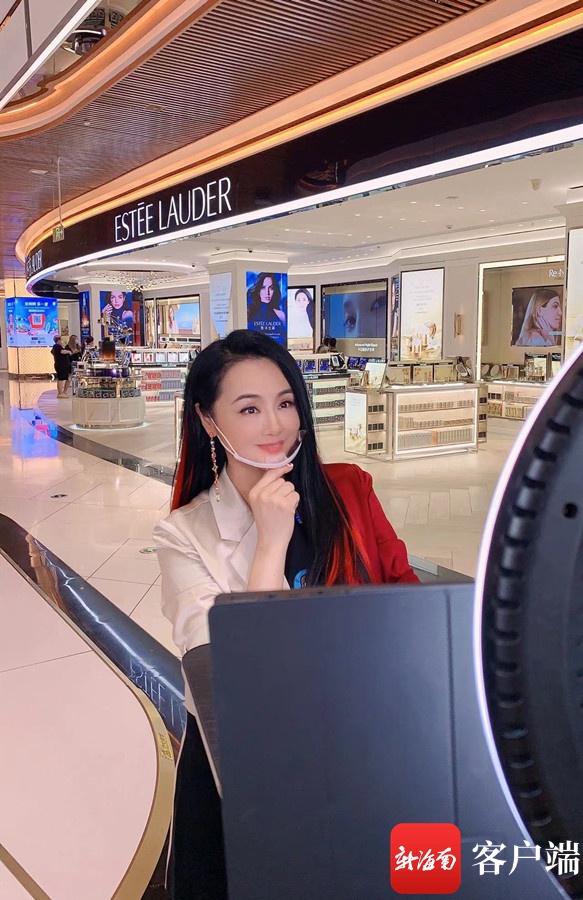 演员曹颖受邀来海南为免税品做直播推广。记者 陈望 摄