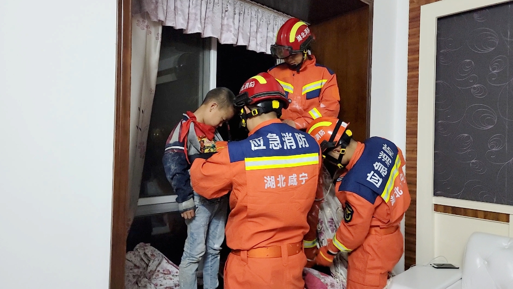 “多亏了你们!当时我真的不知道该怎么办,情急之下就报了警,没想到消防这么快就来了。谢谢你们爬窗进去这么危险……”男孩的母亲连连对消防救援人员表示感谢。