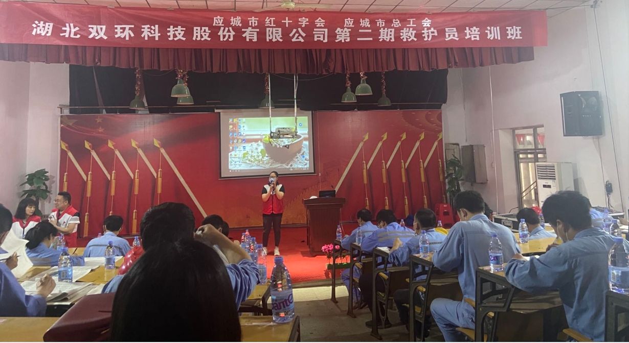 5月27日,应城市总工会、应城市红十字会联合到湖北双环科技股份有限公司开展第二期救护员培训。