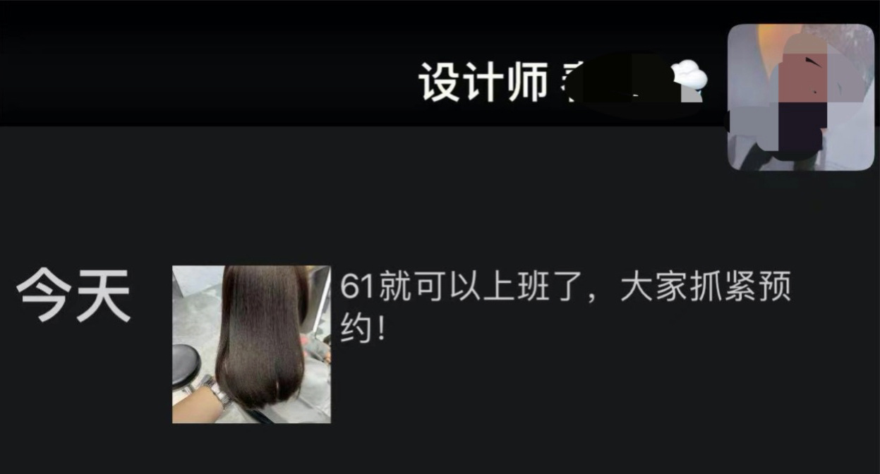 上海发布将进入全面恢复全市正常生产生活秩序阶段后,宋先生的发型师发了一则朋友圈。 受访者供图