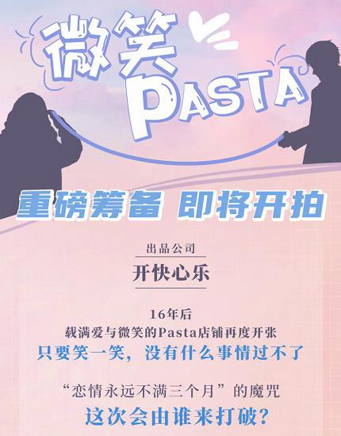 她透露,在目前的初步构想中,男女主依然会保留“何群”和“成晓诗”的原名,男主角也绝不会是“霸总”形象,而是延续原剧中温柔的性格,身份可能还会跟音乐有关;女主角的设定还没有具体落地,也许会继续开面馆,但剧名《微笑Pasta》会改成《微笑百事达》。