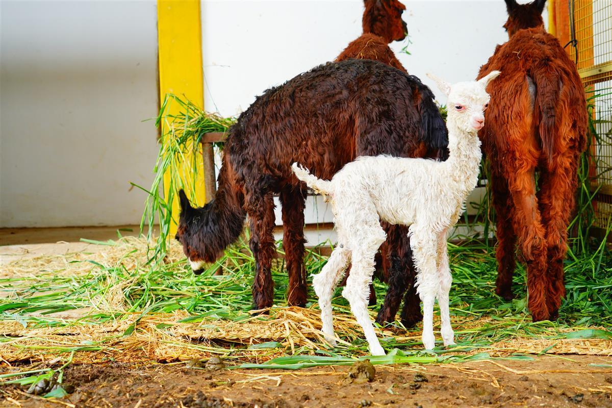 动物园食草片区队长刘琴说,目前小家伙还要吃母乳,过3个月就能吃干草和饲料了。“不过说来奇怪,这只小羊驼浑身雪白,但其父母却都是棕色的。”