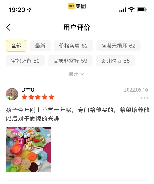 美团优选上有用户表示买玩具希望培养孩子做饭兴趣。
