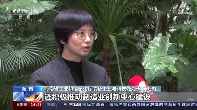海南省工业和信息化厅装备工业与科技处 处长 陈丹虹:鼓励企业建设研发机构,也鼓励企业跟一些平台机构去联合建设共性技术研发的机构,还积极推动一个制造业创新中心的建设,希望通过创新驱动来去打造我们海南先进制造业的产业生态。