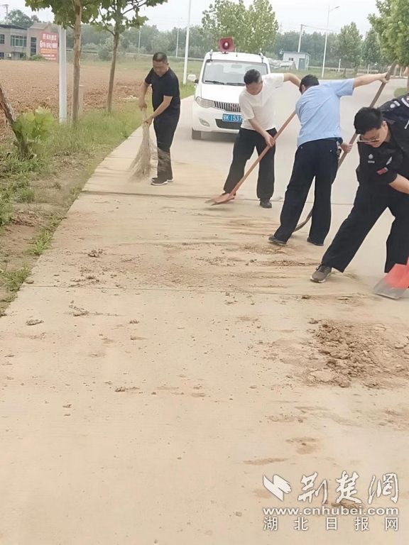 清理路面淤泥。通讯员供图