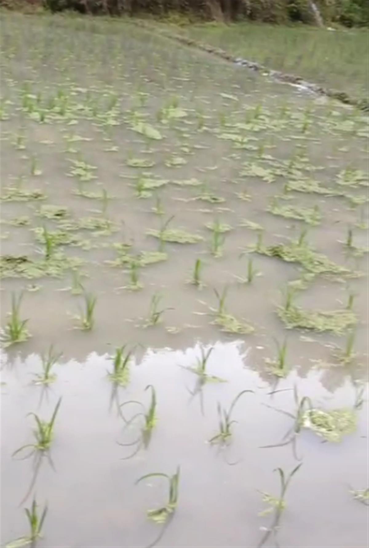 张先生说,在田里忙活了三四个小时,排了大约5亩地的水,所幸秧苗泡水时间不算太长,没有受到太大影响。他于2日下午拍摄的视频显示,雨已经停了,田里依然有少量浑浊的积水。经过排水后,大部分秧苗都露出了水面。“幸好只下雨不刮风,要不然我田里的玉米吹倒了,损失可不小。”张先生说。