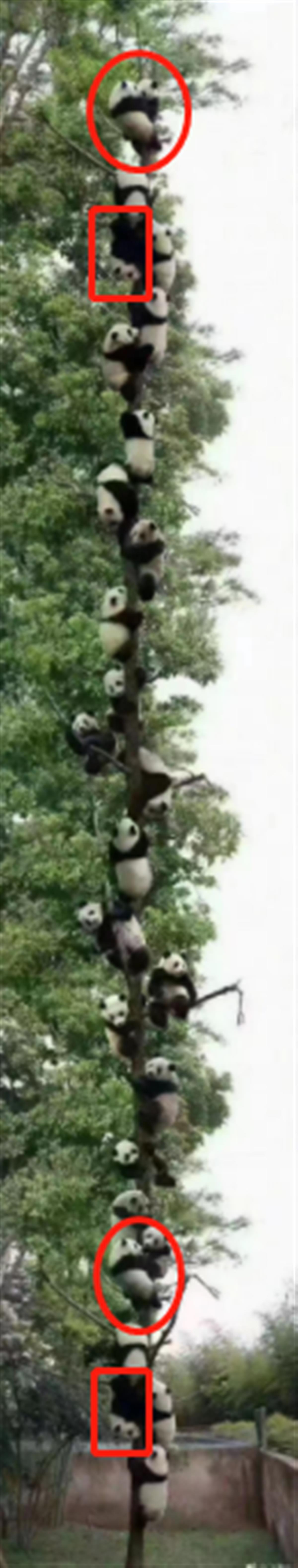 网传27只熊猫爬同一棵树(来源:微信)