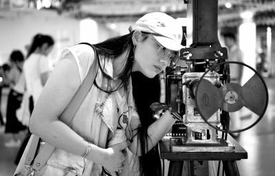 参观者在西影电影艺术体验中心参观不同时代的电影放映机。(2019年摄)新华社发