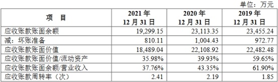 2017年至2021年,皓泽电子应收账款周转率分别为2.43次、2.42次、1.85次、2.19次和2.41次。