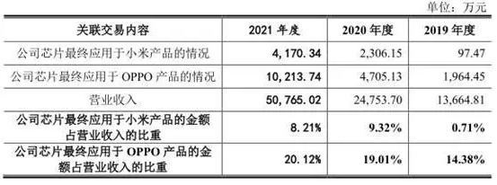 2021年,帝奥微芯片最终应用于小米和OPPO产品的金额合计占帝奥微营业收入的28.33%。