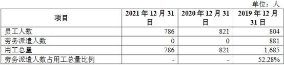2017年至2021年各期末,皓泽电子劳务派遣人数分别为0人、413人、881人、0人和0人。