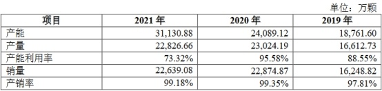 2017年至2021年,皓泽电子产能利用率分别为90.82%、92.57%、88.55%、95.58%和73.32%,产销率分别为104.15%、95.76%、97.81%、99.35%和99.18%。